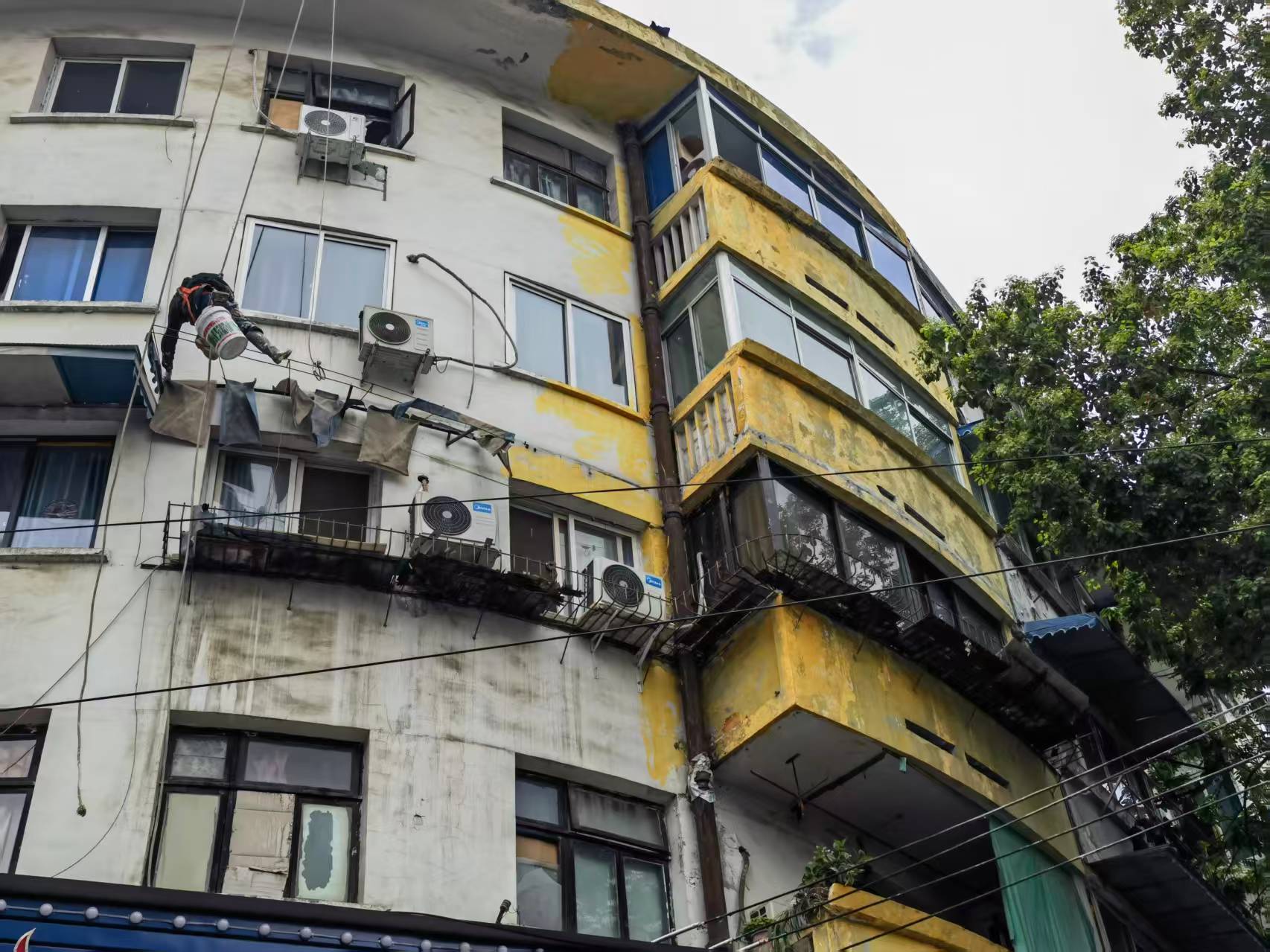 大运会外墙翻新施工现场